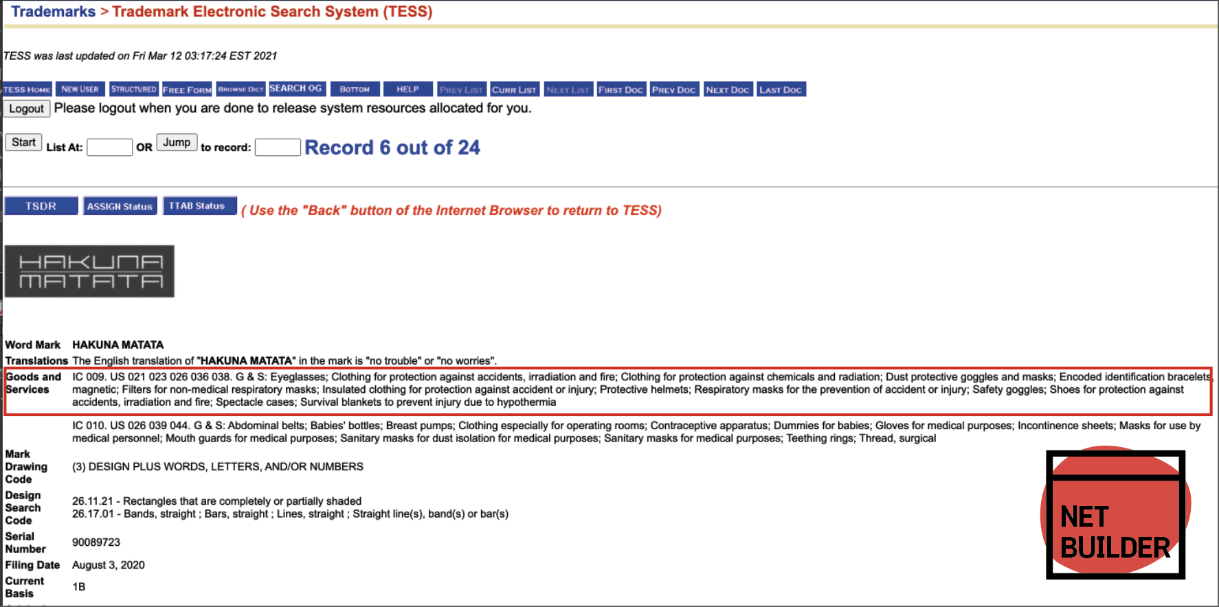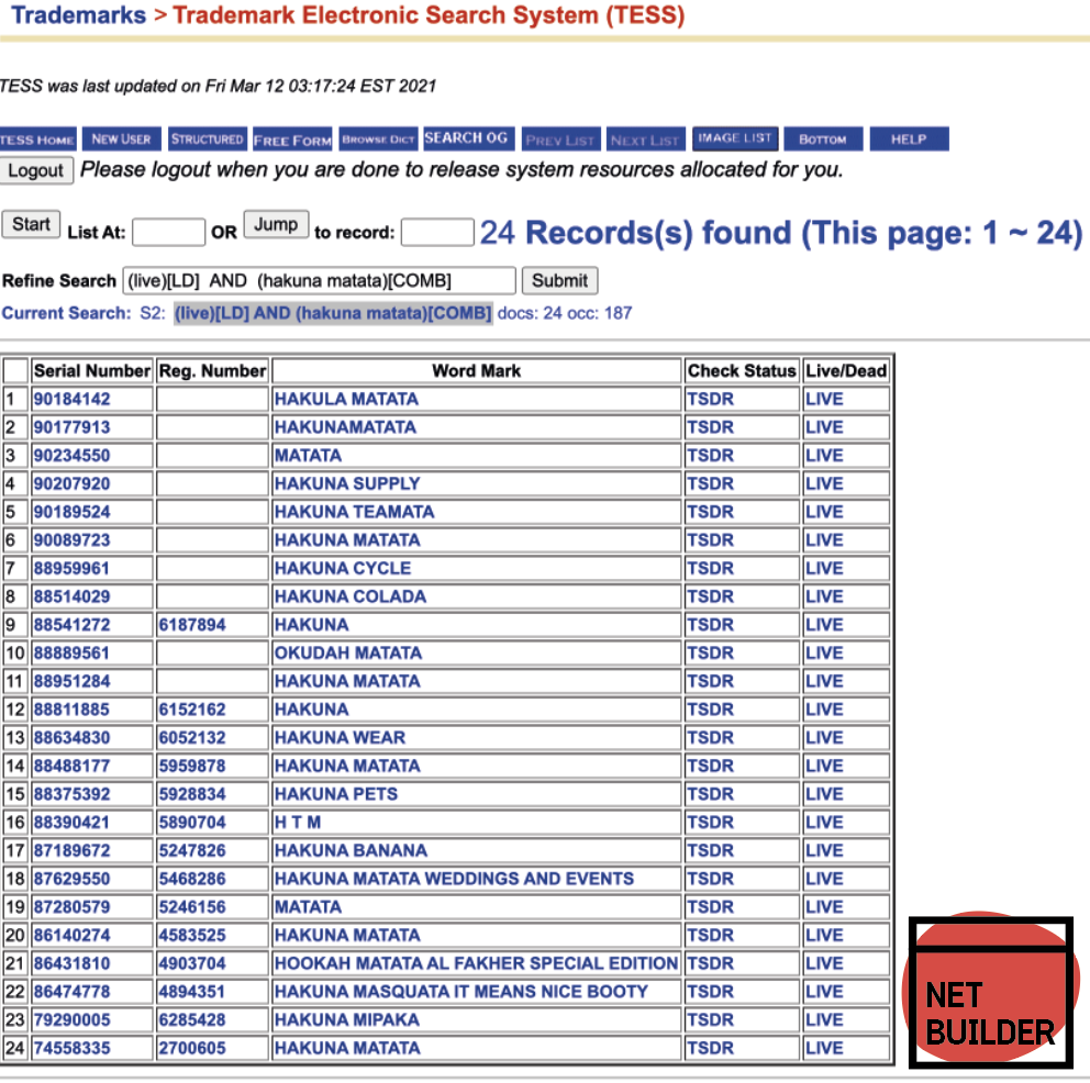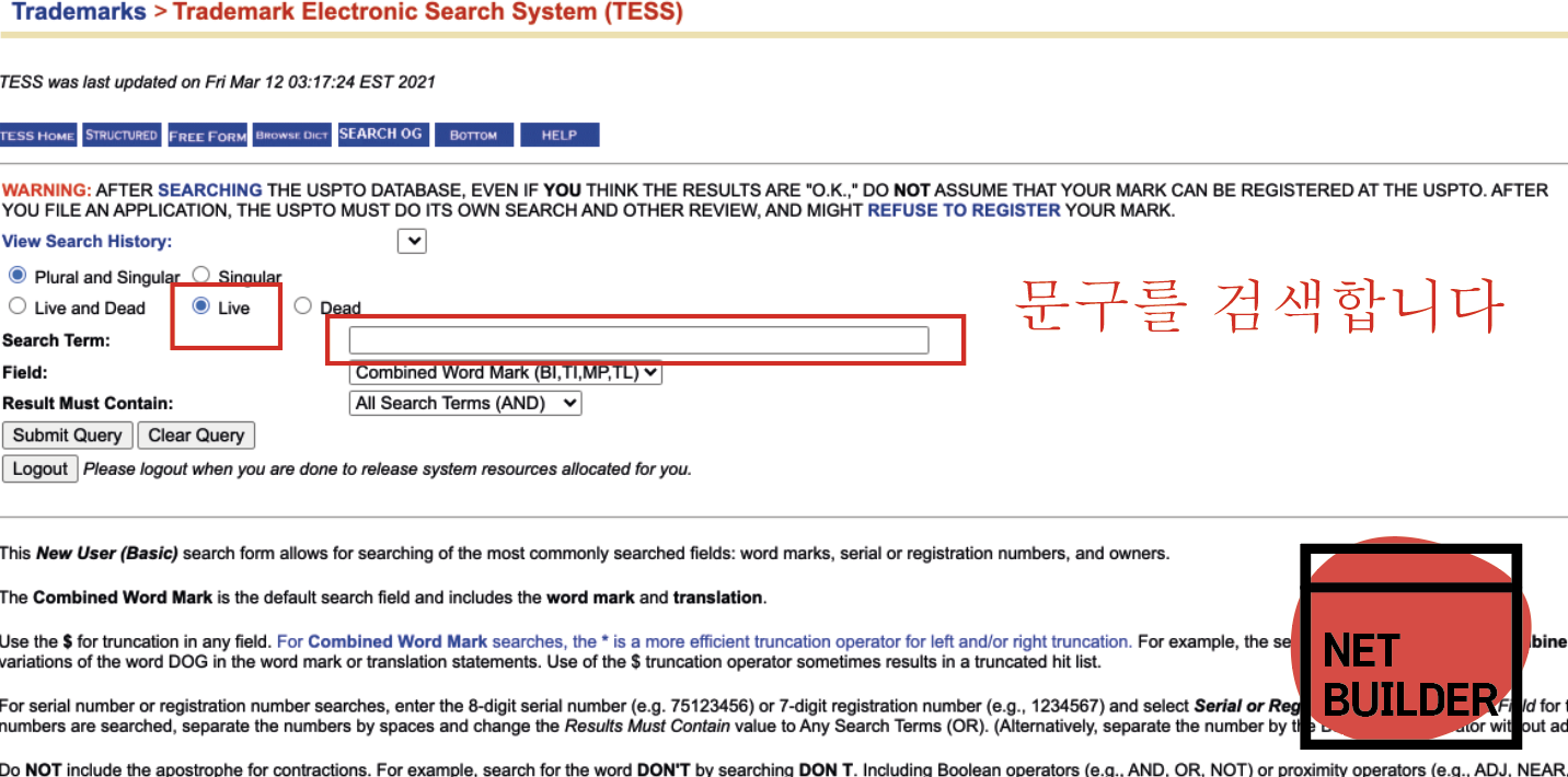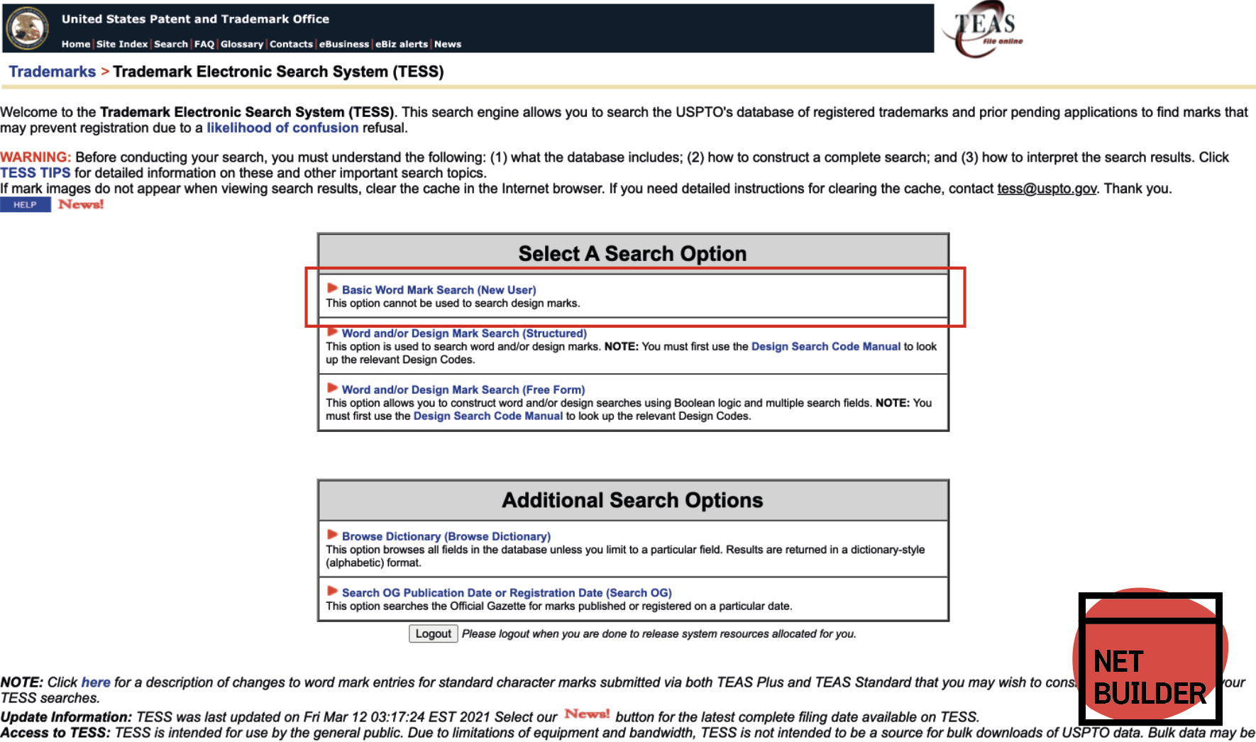 Select A Search Option > Basic Word Mark Search