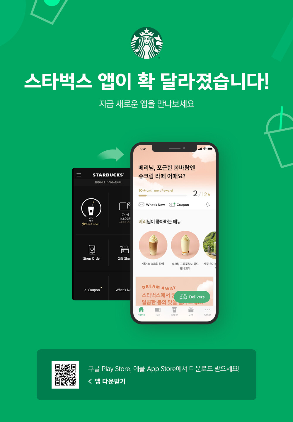 스타벅스 앱이 리뉴얼 되면서