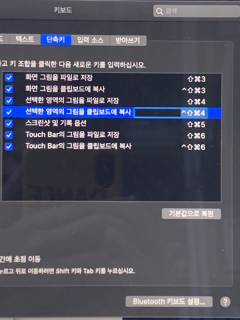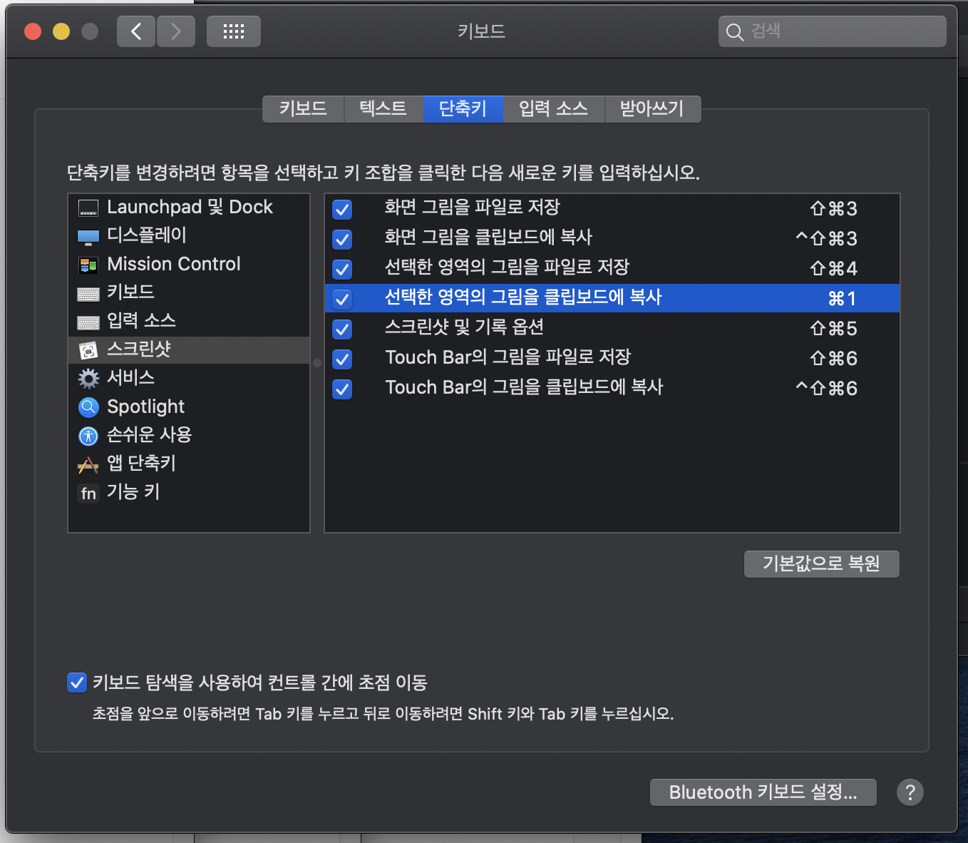 스크린샷 > 선택한 영역의 그림을 클립보드에 복사 선택