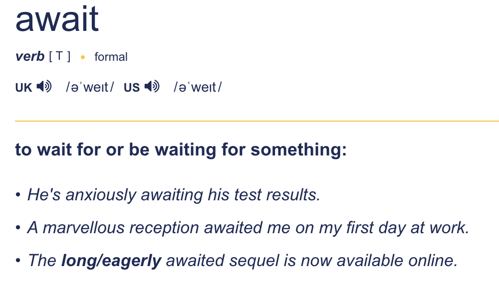 await 어떤 목적을 위해 기다린다 (포멀한 느낌) |