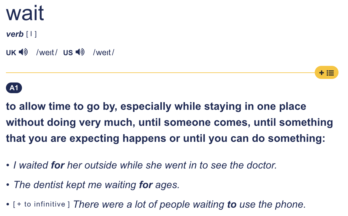 wait는 시간, 어떤 한 장소, 특정한 상황을 기다리고
